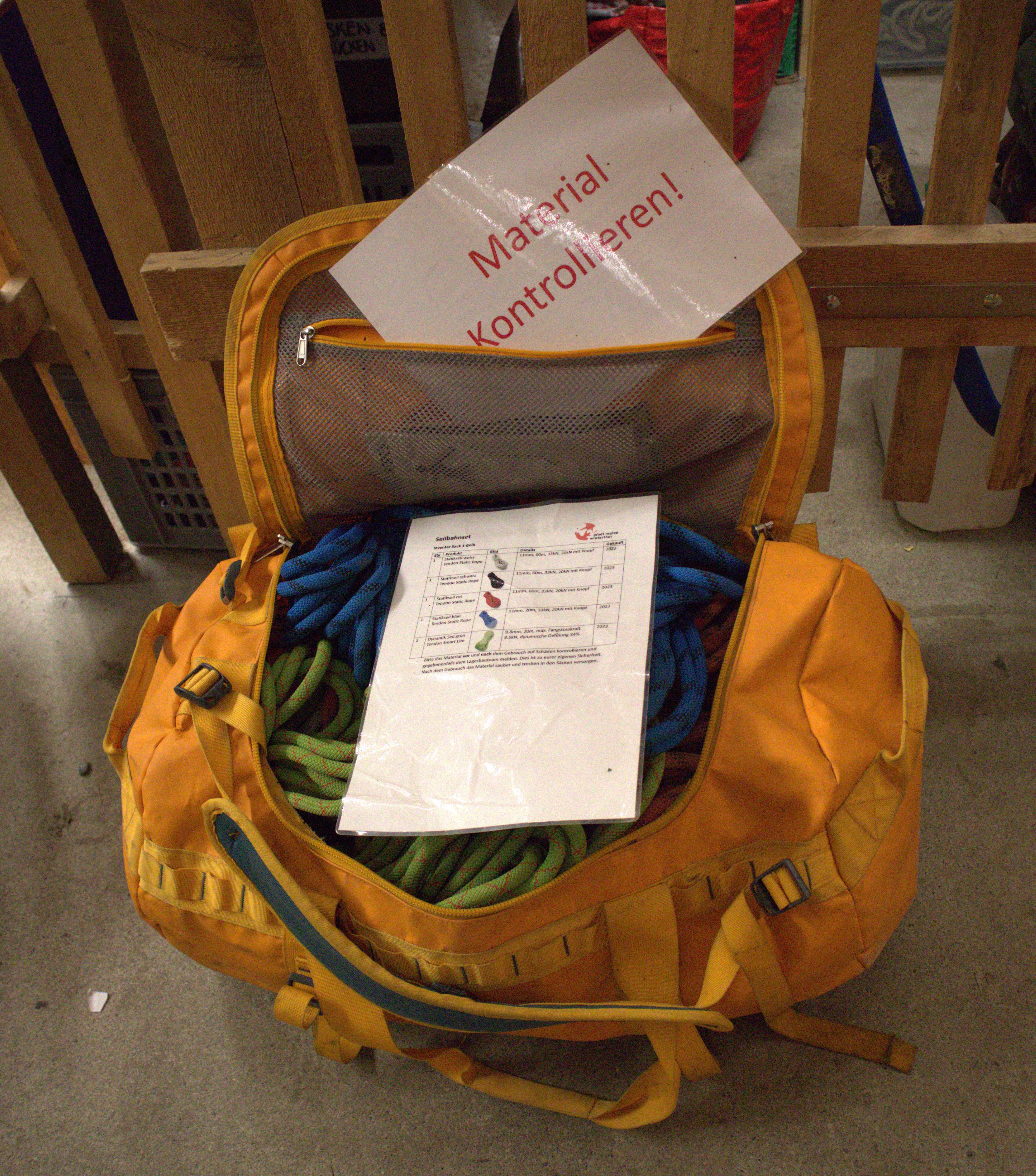 Alles, was du für eine Seilbrücke oder eine Abseilaktivität brauchst kompakt in 2 Seiltaschen.
